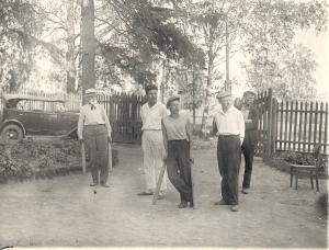 Фото 10. Подготовка к игре в городки у Старой лаборатории. И.П. Павлов — крайний слева.