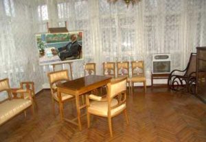 Из гостиной двери ведут в бывшую детскую комнату. Сейчас здесь выставка фотографий, посвященных Л.А. Орбели. Дверь справа – в бывшую спальню Ивана Петровича и Серафимы Васильевны.