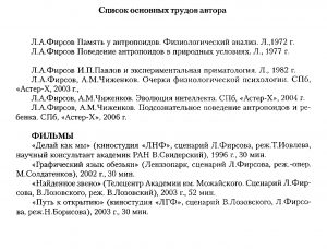В 1973 году Л.А. Фирсов защищает диссертацию на соискание степени доктора медицинских наук по материалам монографии “Память у антропоидов. Физиологический анализ”.