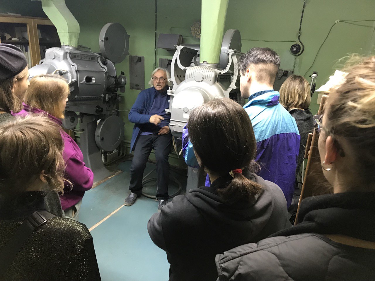 Студенты под руководством сотрудников института Николая Мальцева, Людмилы Андреевой и мастера курса Михаила Железнякова познакомились с принципами работы монтажных станков и кинопроекционной аппаратуры. В дальнейшем они займутся монтажом собственных короткометражных учебных фильмов из материалов, предоставленных Киногруппой института.