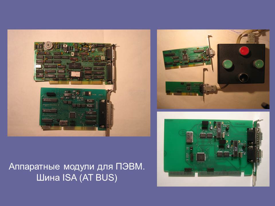 В лаборатории разрабатываются аппаратно-программные средства автоматизации эксперимента. Ранее был реализован ряд аналого-цифровых преобразователей (АЦП) различной разрядности и быстродействия для шины ISA, различные усилители, блоки ввода в ЭВМ межимпульсных интервалов, кнопочные пульты ввода ответов испытуемых в психофизических экспериментах (слайд 3). АЦП с дифференциальными входами имели встроенную систему автокоррекции смещения нуля и нелинейности. В блоке управляемых фильтров на переключаемых конденсаторах были реализованы фильтры восьмого порядка Бесселя, Чебышева, Баттерворта с программной перестройкой частоты среза в диапазоне от 30 Гц до 10 кГц. Выносной пульт с кнопками, удаляемый от системного блока на расстояние до 50м, имел эффективную систему подавления дребезга контактов.