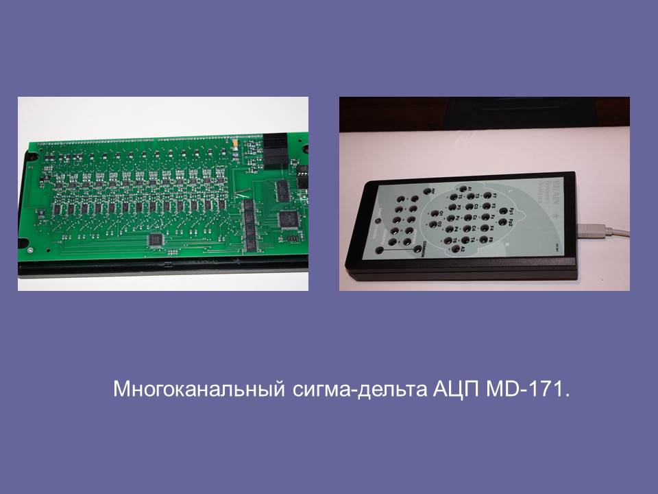 Реализован модуль MD 171 , обеспечивающий параллельную регистрацию до двадцати шести электрофизиологических сигналов (слайд 6). Прибор подключается к компьютеру через USB порт, через который осуществляется и питание устройства.