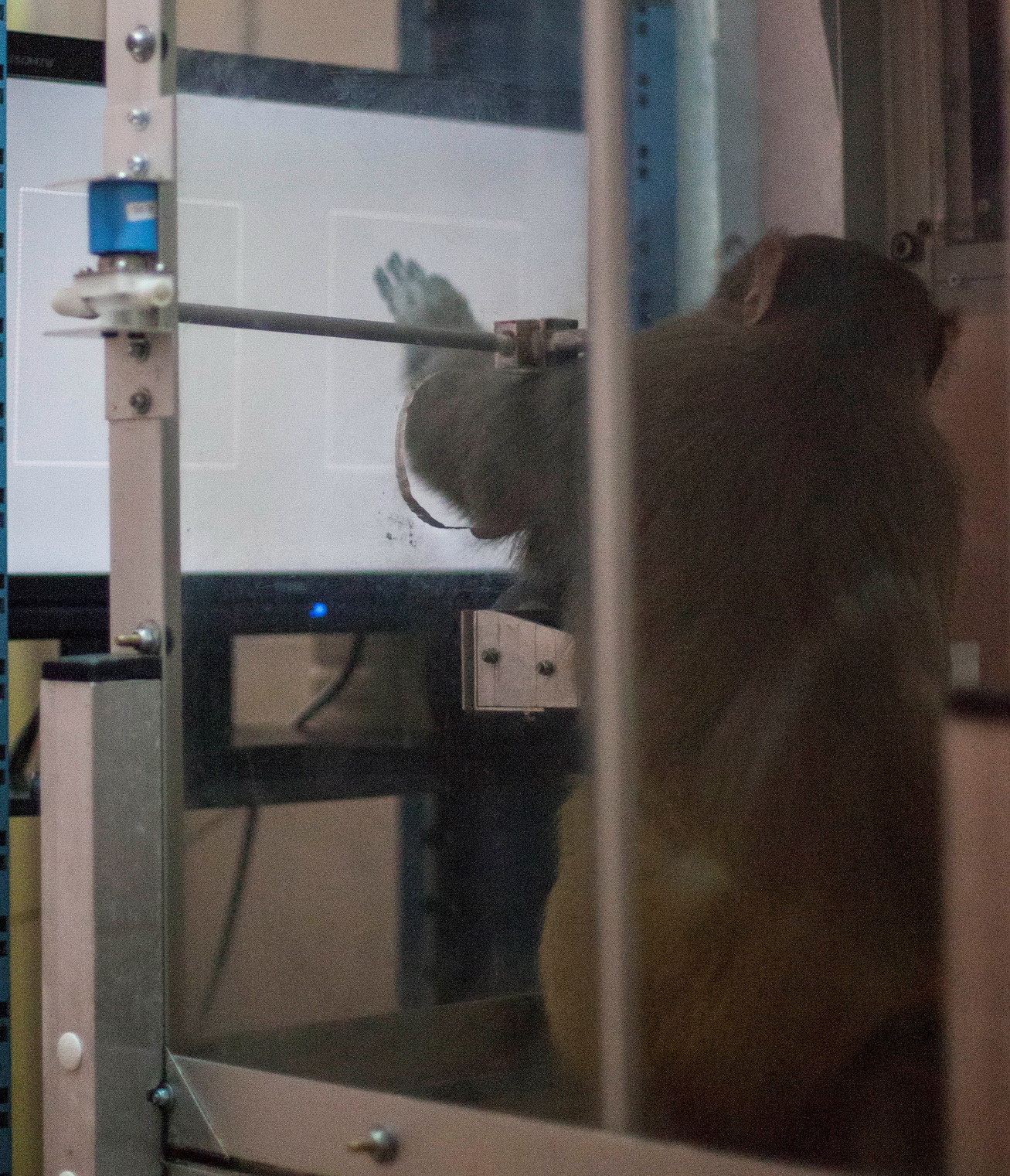Для проведения исследований на обезьянах разработан экспериментальный комплекс, основу которого составляет компьютер с сенсорным дисплеем и автоматическая система пищевого или питьевого подкрепления. Комплекс позволяет осуществлять зрительную и слуховую стимуляцию любой сложности, регистрировать ответную реакцию в виде касания определенной области экрана и обеспечивать подкрепление в случае правильного ответа. Для анализа когнитивных вызванных потенциалов предусмотрена возможность синхронизации с системой регистрации ЭЭГ. Работа комплекса полностью автоматизирована и не требует присутствия экспериментатора рядом с животным, что повышает объективность результатов проводимых исследований.