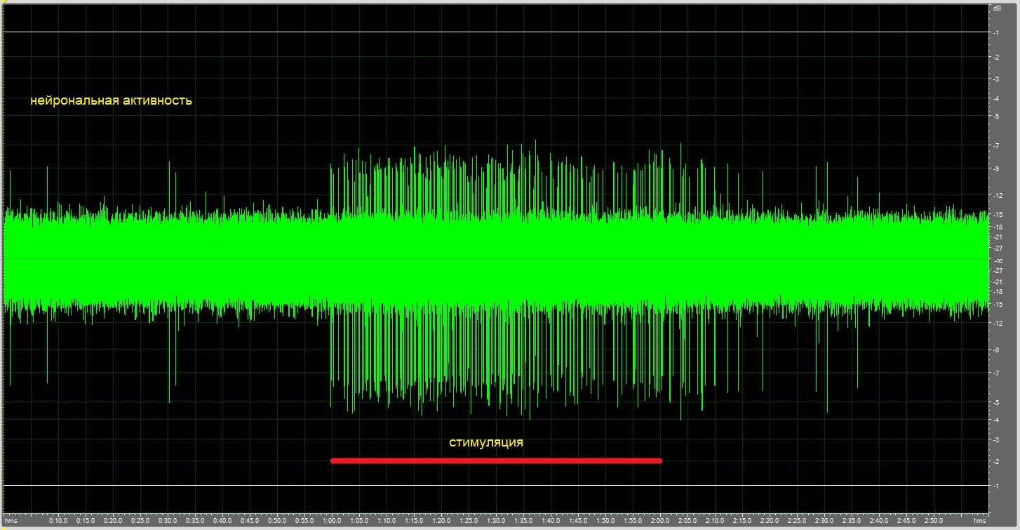 В лаборатории создан программно-аппаратный комплекс для регистрации нейрональных реакций на управляемую электрическую стимуляцию разных структур мозга с возможностью on-line дискриминации спайков по амплитуде с раздельным построением постстимульных гистограмм для каждой спайковой последовательности для последующей off-line графической и статистической обработки [12]. Кроме того разработано программно-аппаратное устройство для компьютерного мониторинга моторной функции желудочно-кишечного тракта у человека (презентация 4).