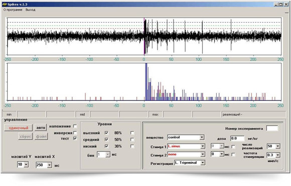 Программа для on-line регистрации спайковой активности нейронов и автоматизированной стимуляции разных структур мозга наркотизированных крыс