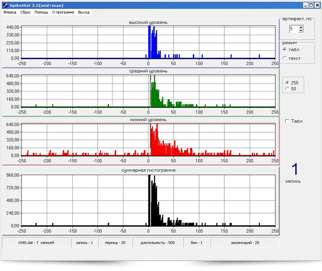 Программа для off-line анализа и дифференциальной дискриминации по амплитуде активности нейронов разных структур мозга наркотизированных крыс
