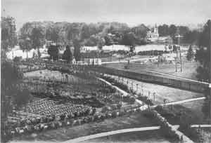 построенные при И.П. Павлове. Слева вверху - операционная, клиника, внизу - щенятник и манеж. Просмотр увеличенного фото (800×486 px, 31 Kb) |